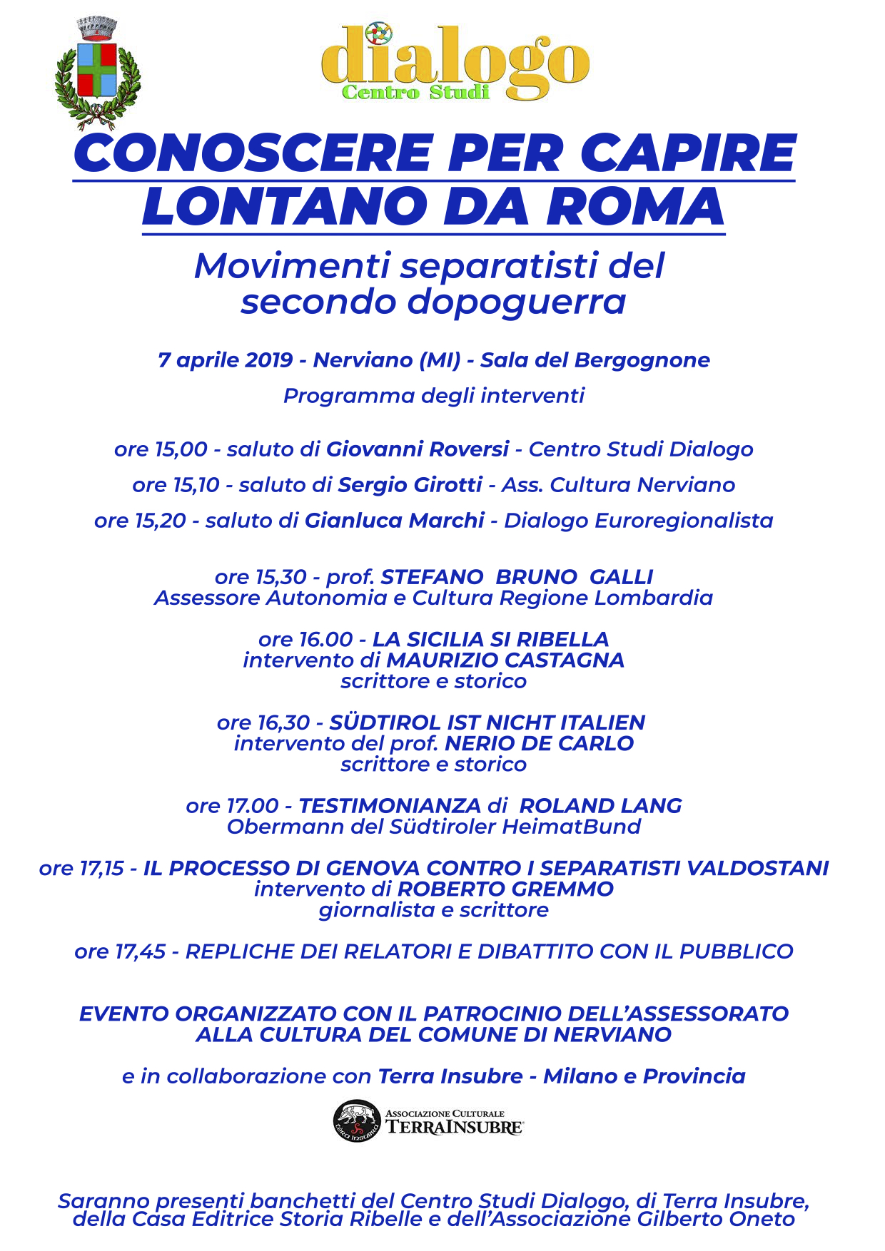 /, Insubria News/“LONTANO DA ROMA” CONVEGNO A NERVIANO IL 7 APRILE